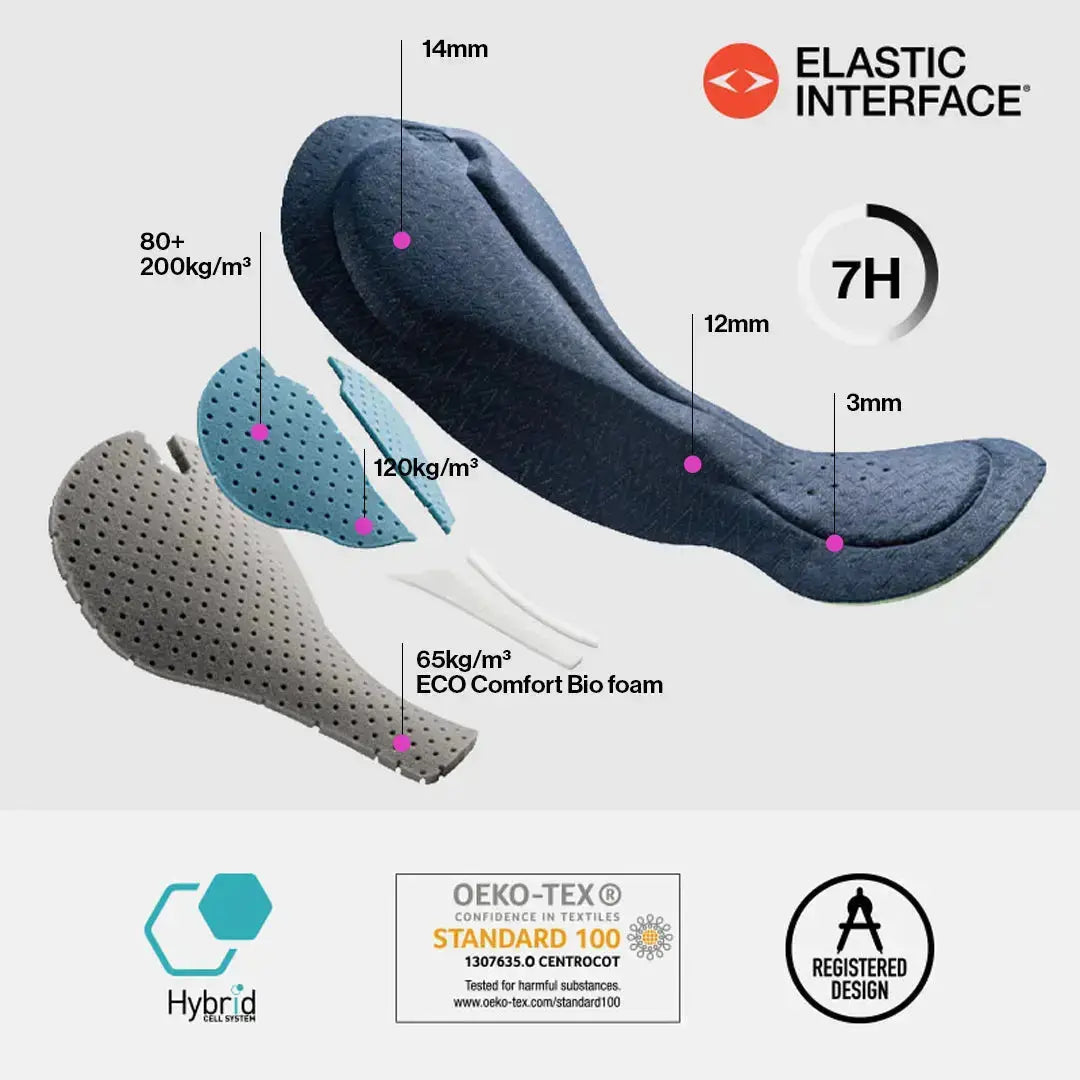 Características principales: Cuenta con una construcción especial de punto por urdimbre para una excepcional resistencia a la abrasión que minimiza los enganches y la formación de bolitas. La badana de la serie EIT-EXPLORER HYBRID proporciona una sujeción adaptable para una comodidad duradera. Tirantes delanteros: Diseño sin costuras y de alta elasticidad para un ajuste ceñido pero sin restricciones. Tirantes traseros: Los tirantes traseros perforados con láser mejoran la ventilación y la absorción de la humedad. Un práctico mini bolsillo trasero permite guardar de forma segura los objetos esenciales. artículos.Las marcas reflectantes en ambos lados aumentan la seguridad en los paseos nocturnos.La cinta antideslizante en el dobladillo garantiza un ajuste estable que no se sube.