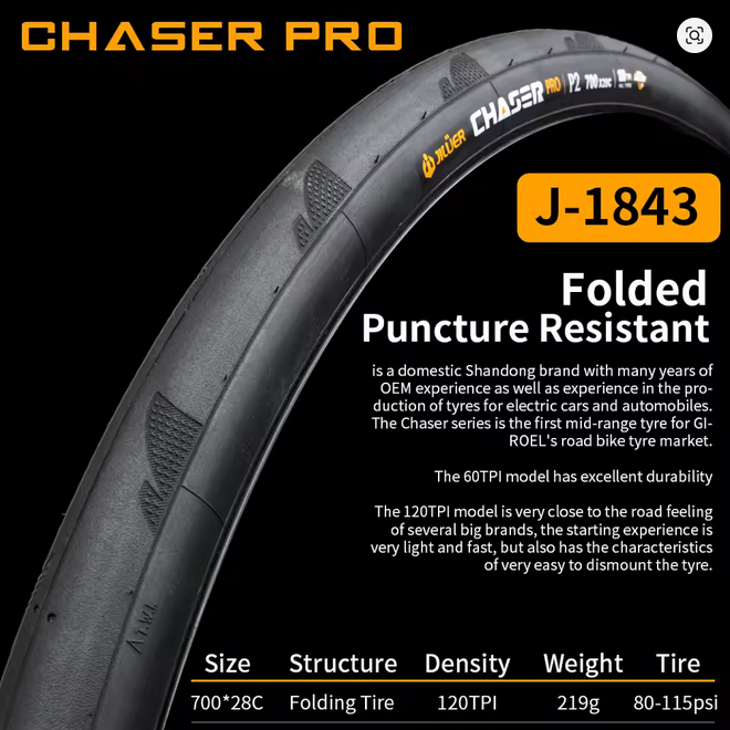 Cubierta Jiluer Chaser Pro P2 Ruta 700x28c 120TPI Kevlar Negro