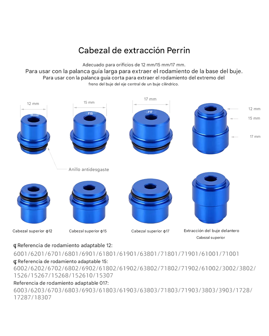 - Aplicación: Desmontaje e instalación de rodamientos de maza (eje pasante/tambor), cajas pedaleras de ajuste a presión (Press-fit) y juegos de dirección.