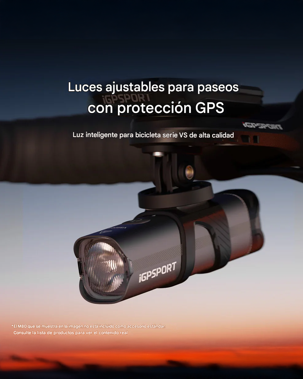 Luz Delantera Inteligente iGPSPORT VS1200S + Soporte M80